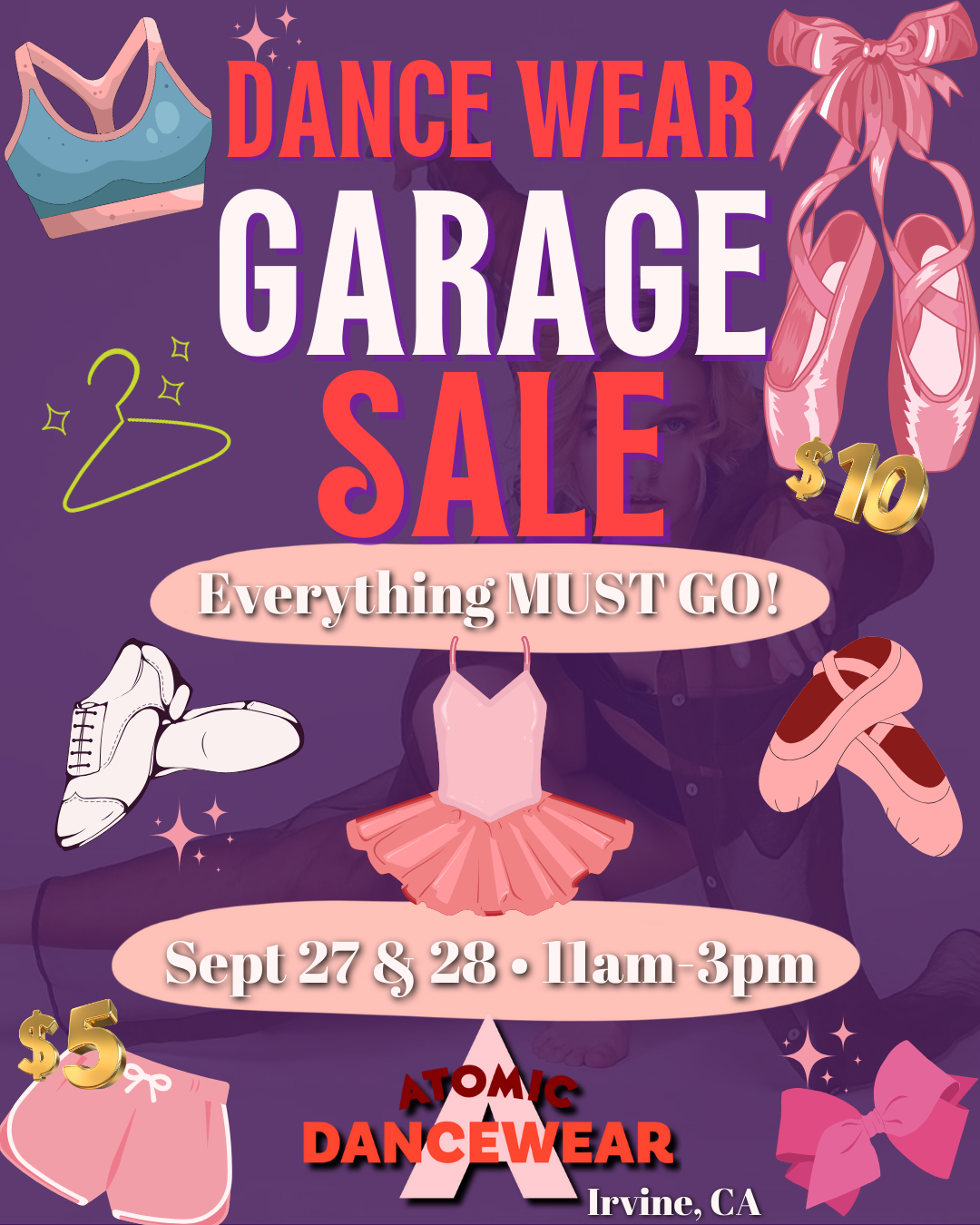 After much thought (and a lot of love), we’re announcing our Garage Sale event, where everything must go. From leotards and tights to shoes and accessories, we’re offering brand-new items starting at just $5. This is the last chance to shop our inventory — and you’ll never see prices like this again.